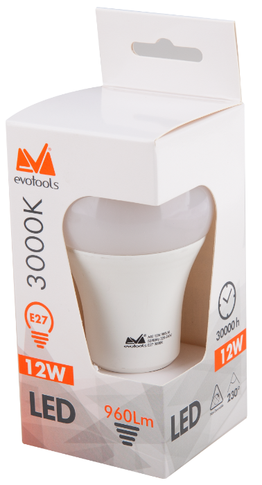 Az EvoTools® LED‑izzó fényárama 960 lumen, és E27 foglalatú lámpatestekhez illik. A LED‑izzók az izzólámpák alternatívái, hosszú élettartammal, jobb ütésállósággal, hatékonysággal és alacsony energiafogyasztással. Optimális körülmények között az átlagos élettartam körülbelül 25000 óra.