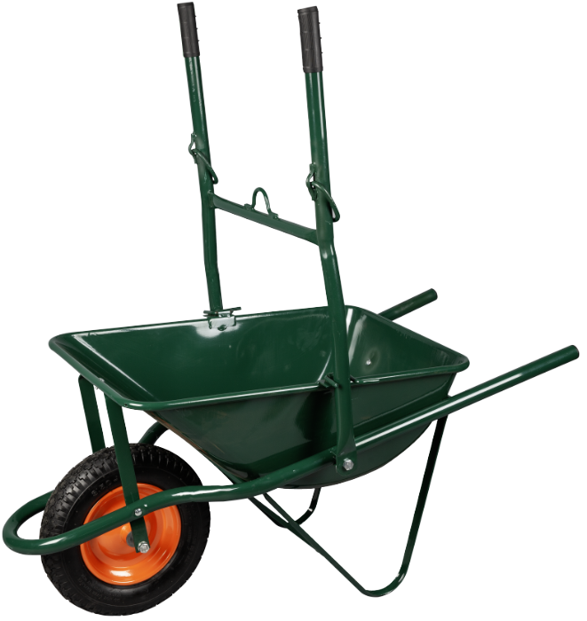 A billenthető, építőipari talicska masszív és megbízható eszköz, kifejezetten az építőipari követelményekhez tervezve. Lehetővé teszi az anyagok magasba emelését elektromos emelő vagy csiga használatával, így nincs szükség más edényekbe történő áttöltésre. Pneumatikus kerékkel és erős, horganyzott acél vázzal rendelkezik, ami optimális stabilitást biztosít használat közben. A fogantyúk felhajthatók, csúszásmentes műanyag felülettel a biztos irányítás érdekében, és könnyen lehajthatók a rögzítés megkönnyítése céljából.